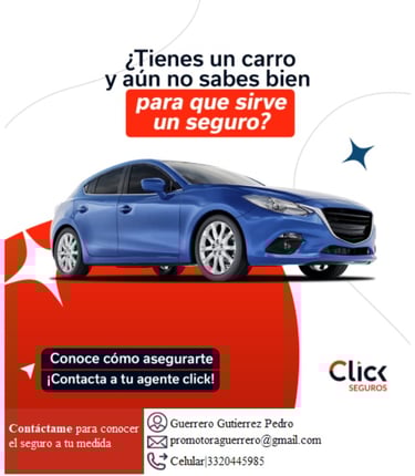 En CLICK SEGUROS te propocionamos el seguro para tu auto que te brinda seguridad y tranquilidad. Somos una opción rápida, accesible y confiable para asegurar tu vehículo sin complicaciones.
